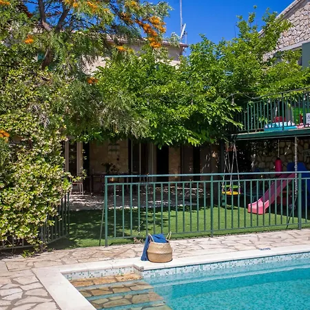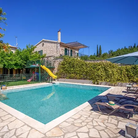 Villa Yiarios nabízí ubytování s soukromým plaveckým bazeném, rovnou střechou k opalování a akvaparkem, a je usazeno 2,8 km od Pláž Dassia. Tato vila leží 2,6 km od dominanty Agia Triada.